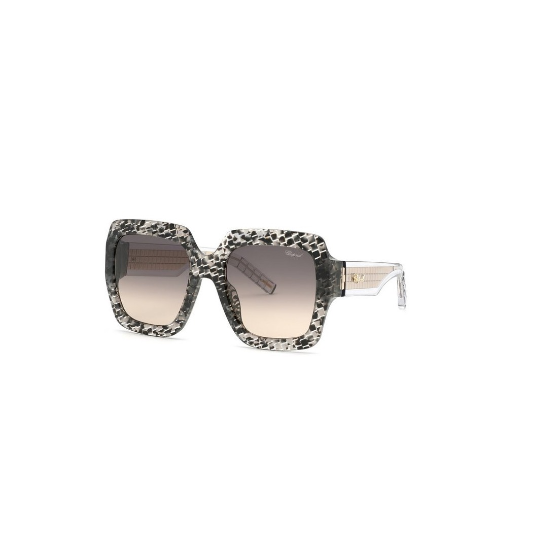 Fabriquées en acétate gris, ces lunettes offrent une sensation de légèreté et un confort optimal grâce à leur taille généreuse avec un pont de 21 mm et des branches de 140 mm, assurant un maintien parfait. Les verres antireflets protègent efficacement contre les reflets gênants, améliorant la clarté visuelle tout en préservant un indice UV 2, idéal pour une protection modérée. La marque Chopard, reconnue pour son positionnement de luxe, signe ici un accessoire à la fois technique et esthétique, qui allie finesse des détails et robustesse, pour une allure distinguée et un port agréable tout au long de la journée.