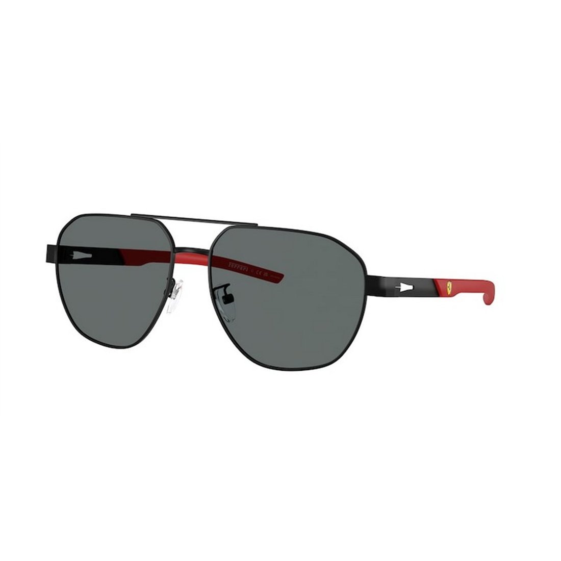 Fabriquées en métal noir, ces lunettes offrent une robustesse et une légèreté incomparables, assurant un confort optimal tout au long de la journée. Leur pont de 16 mm et leurs branches de 145 mm garantissent un maintien sûr sans compromis sur l’esthétique. Les verres polarisés protègent efficacement contre les reflets, améliorant la visibilité et réduisant la fatigue oculaire, tandis que l’indice UV 3 assure une protection solaire adaptée. Avec une hauteur de verre de 50 mm et une largeur de 59 mm, elles offrent un champ de vision large et dégagé, idéal pour les activités en extérieur. La monture complète souligne la présence de ces lunettes, affirmant un caractère affirmé et raffiné, fidèle à l’esprit premium de Ferrari Scuderia.