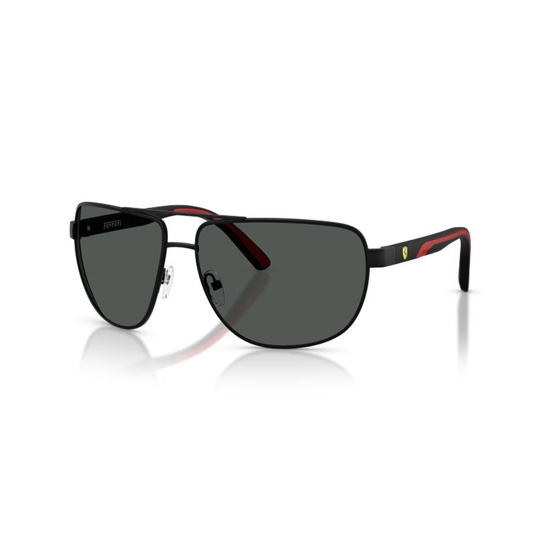 Conçues avec une monture en métal noir et des branches en acétate, ces lunettes allient robustesse et légèreté, assurant un port agréable tout au long de la journée. Le pont de 14 mm et les branches de 135 mm garantissent un ajustement précis et stable, tandis que les verres de 64 mm de large et 50 mm de hauteur offrent un champ de vision large et confortable. La finition mate souligne leur caractère raffiné, fidèle à l’esprit premium de la marque Ferrari Scuderia, synonyme d’excellence et de performance.
